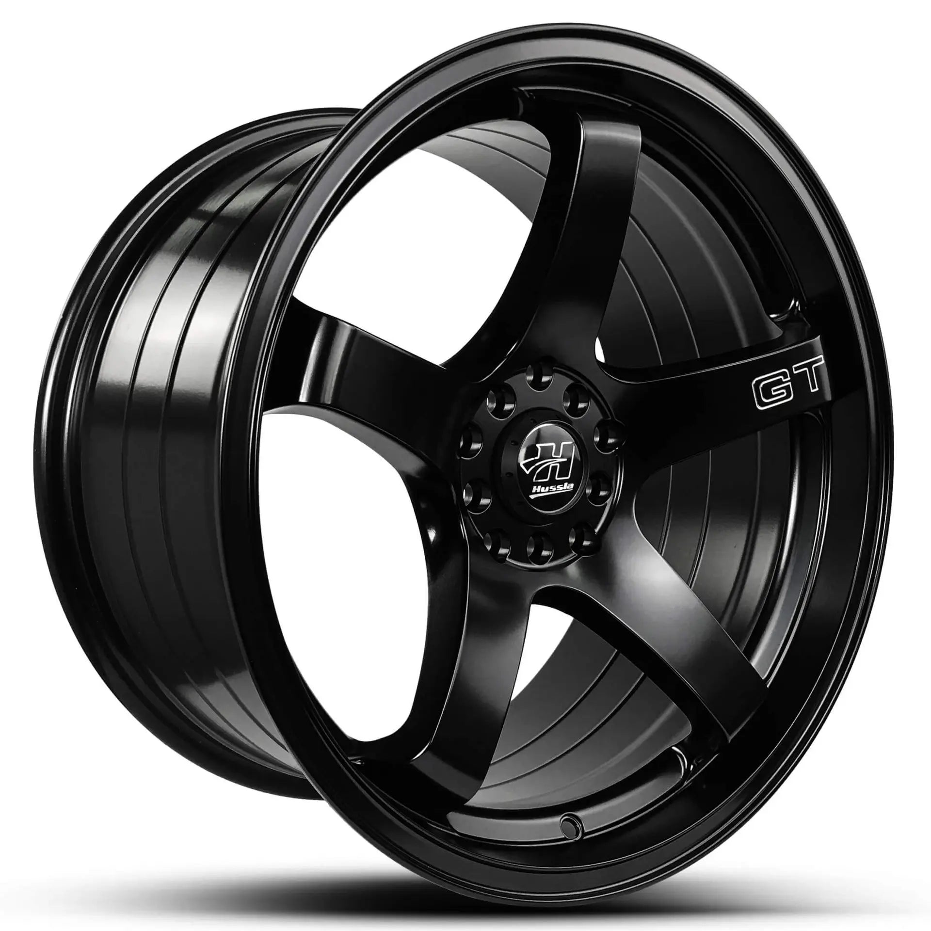 The Hussla GT has become the best seller in the small to medium sized wheel range by Hussla. Concave five spoke styled rim with concave spokes. Available in an array of quality finishes and staggered widths to suit. Available in many offsets and have large brake clearances to suit many vehicles. From Subaru WRX, Toyota 86, Toyota Supra, VE, VF, VY, VZ Holden Commodore, Ford Falcon, VW Golf and many more vehicles are rocking these lightweight alloys. GT logo lettering on the spoke finishes off the five spoke deep dish wheel. The JDM vehicle scene love this wheels and have made it infamous on the market. This wheel is of premium quality both in structure and design. Lightweight and an amazing colour finish sets this apart from the rest. A track record of ultimate performance and warranties in place will give you the ease of mind when purchasing this wheel for your ride. Available in multiple colours, like gloss black , matte black, polished lip, gold, white , bronze and many more colour rims.